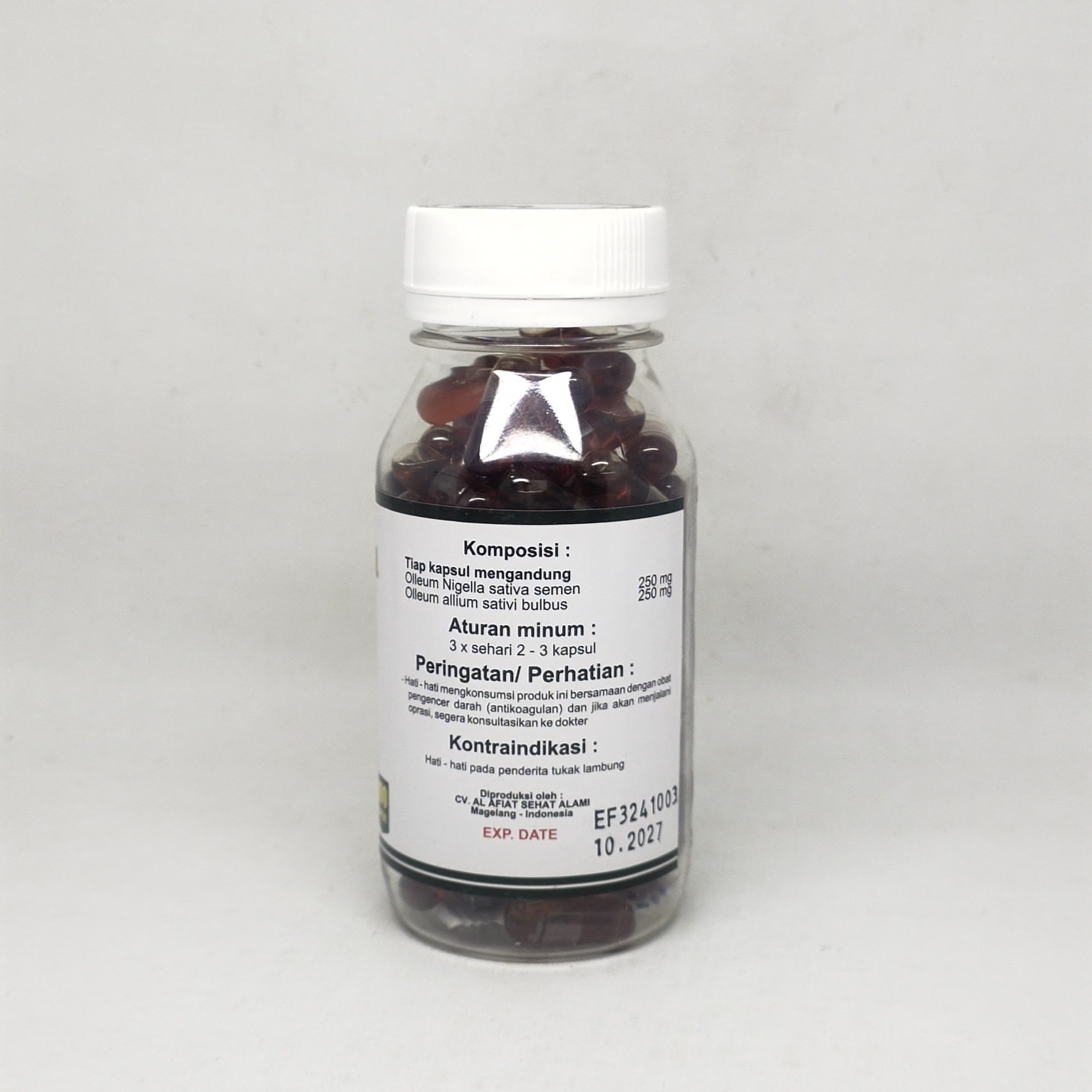 Al Afiat Haba Garlic Oil adalah suplemen herbal alami yang menggabungkan khasiat luar biasa dari Habbatussauda (jinten hitam) dan Minyak Bawang Putih dalam bentuk kapsul lunak yang praktis. Keduanya dikenal sebagai bahan alami yang efektif untuk membantu meningkatkan daya tahan tubuh, menjaga kesehatan jantung, dan melawan radikal bebas.