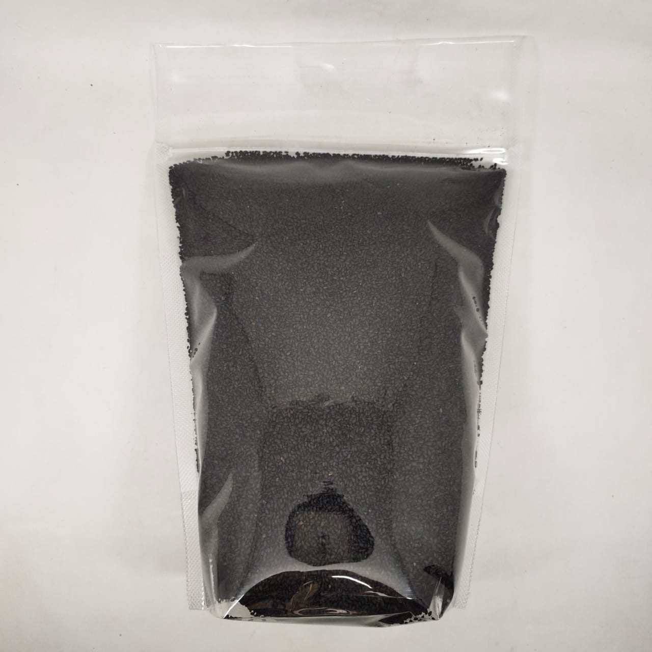 Warna & Bentuk: Saat kering berbentuk butiran kecil berwarna hitam pekat. Setelah direndam, akan mengembang dan muncul lapisan bening (selaput jeli) di sekeliling bijinya, mirip dengan telur katak atau chia seeds.