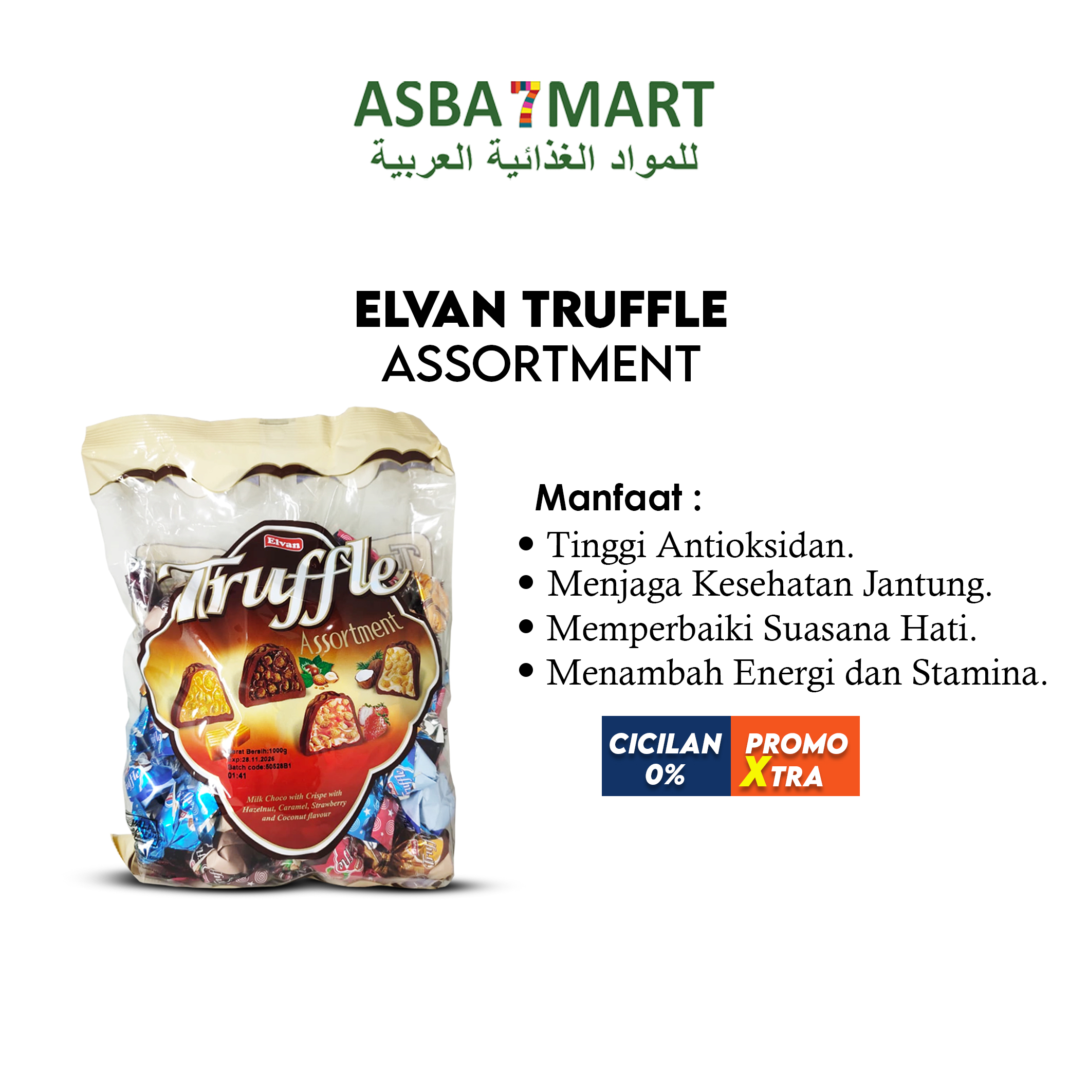 Nikmati sensasi cokelat premium khas Turki dalam ukuran jumbo! **Elvan Truffle Assortment 1KG** berisi campuran cokelat truffle dengan berbagai varian rasa favorit seperti Strawberry, Hazelnut, Caramel, dan Coconut. Dibalut dalam lapisan cokelat lembut dengan isian krim yang lumer di mulut, menjadikannya pilihan sempurna untuk suguhan tamu, hampers, atau stok camilan keluarga.