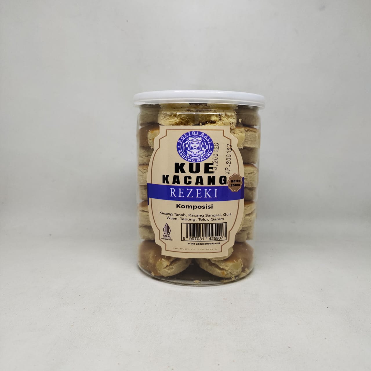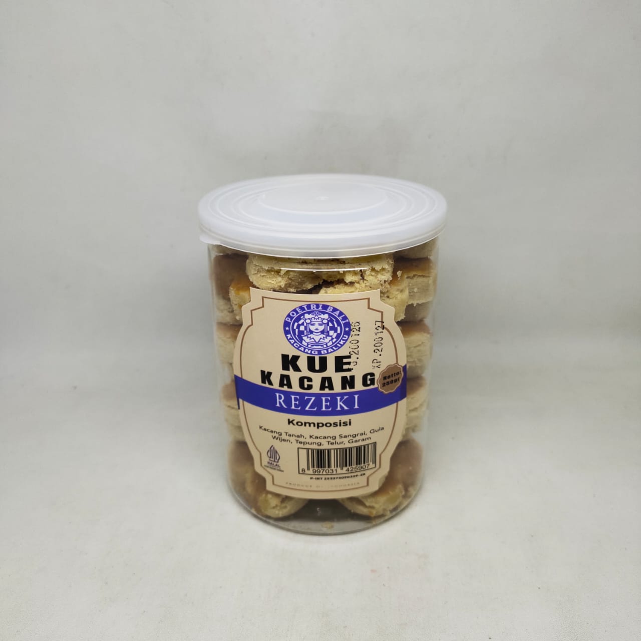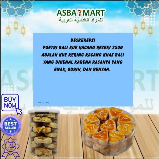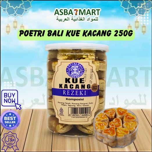 Poetri Bali Kue Kacang Rezeki (250g) adalah salah satu oleh-oleh khas Bali yang sangat populer karena cita rasa tradisionalnya yang otentik. Kue ini memadukan tekstur yang renyah dengan rasa gurih kacang yang dominan.