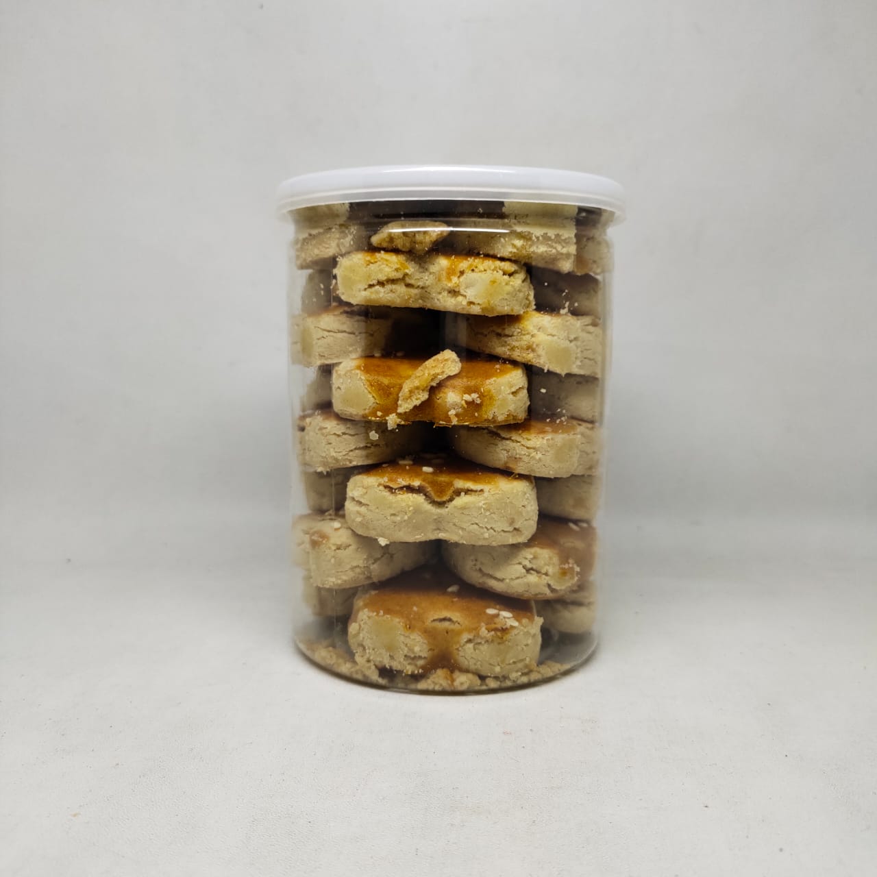 Kemasan: Menggunakan toples plastik atau mika bening yang cukup kokoh untuk menjaga keutuhan kue agar tidak mudah hancur selama perjalanan.