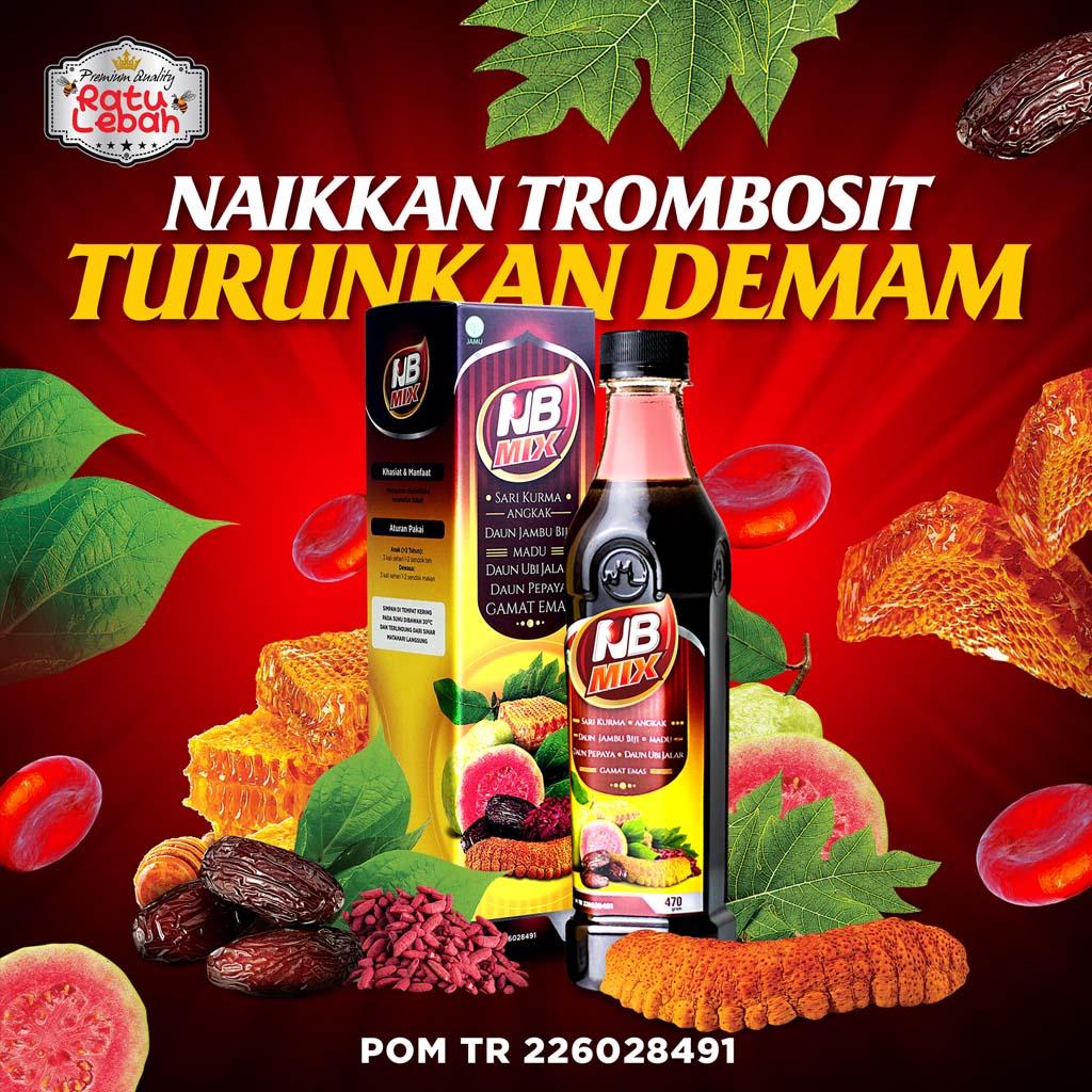 Produk ini adalah suplemen herbal cair dari brand Ratu Lebah (NB Mix / DB Mix) yang mengkombinasikan sari kurma, madu, dan angkak dengan berbagai bahan herbal lainnya. Umumnya digunakan untuk membantu menjaga daya tahan tubuh dan menunjang pemulihan kondisi tertentu.